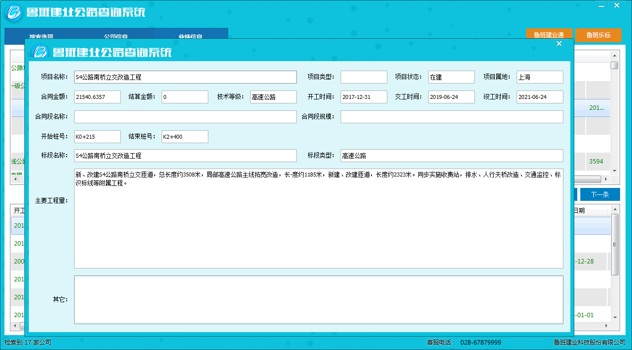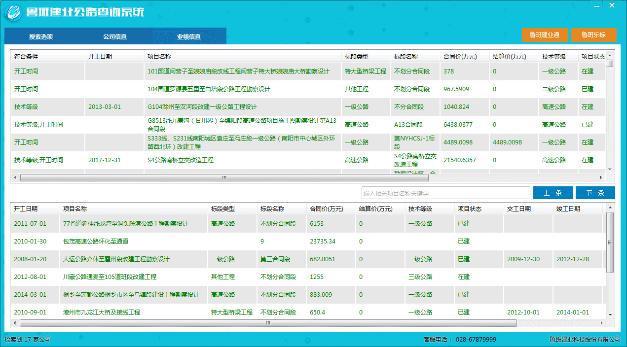 公路业绩快速筛选,项目在建、竣工一手掌握。